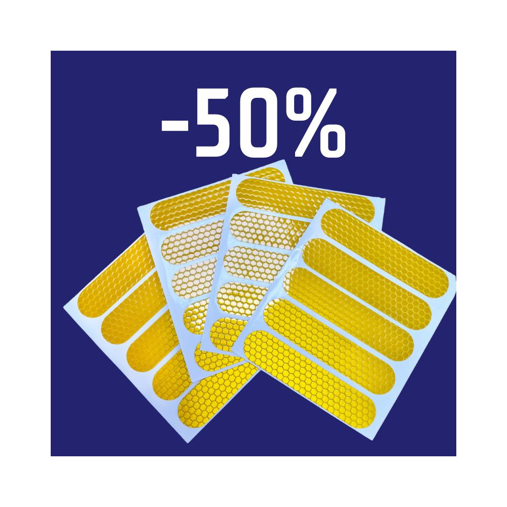 Pegatinas amarillas reflectantes para mayor visualización y por lo tanto aumento de tu seguridad al conducir tu patinete eléctrico.